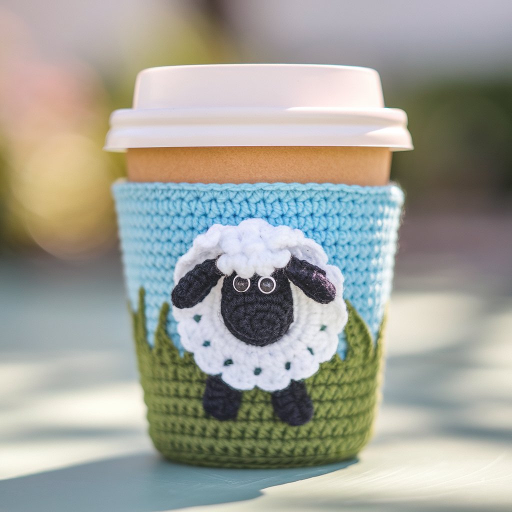5. Crochet Dancing Sheep Cup Cozy Pattern