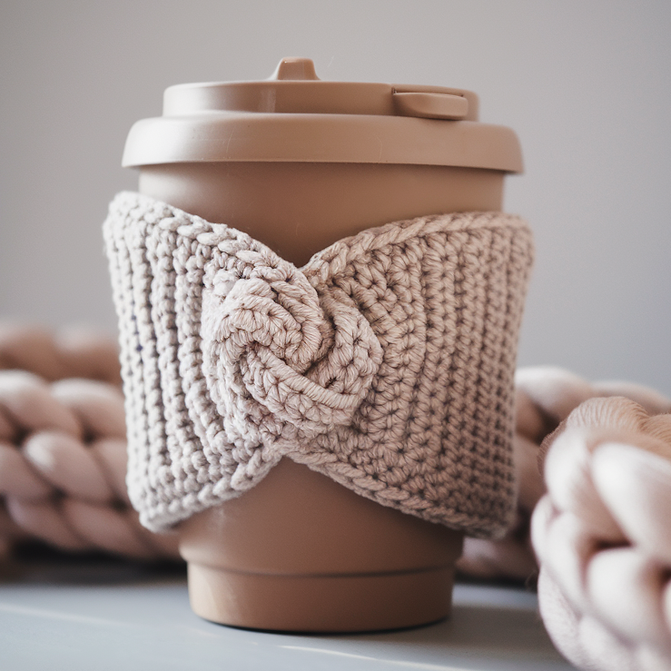 Finished size (pattern): Circumference ~9.5–10″, Height ~3″ (fits most 12–16 oz cups)