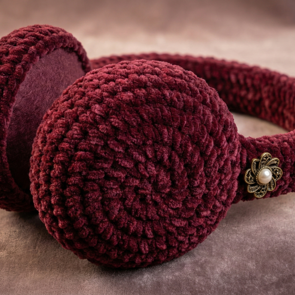 - Existing ear muff base — if you have a store-bought ear muff set, make removable crochet covers that slip over the existing cups. Add snaps/elastic for secure fit.