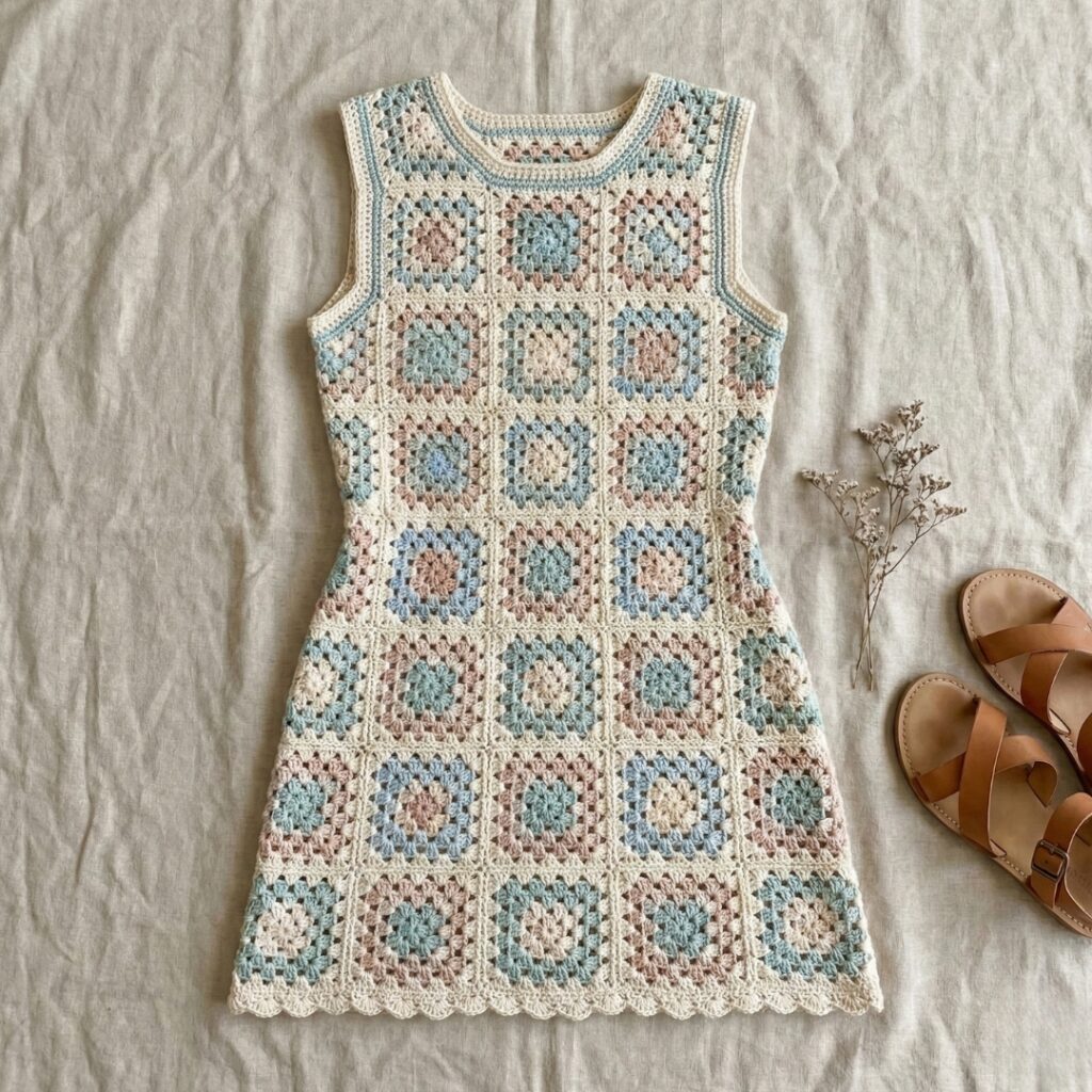 1. Crochet Granny Square Fabric Dress Pattern