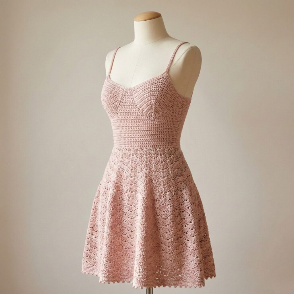 - Work increases in the skirt rounds to get desired hem fullness. For a gentle A-line, increase 6–8 stitches every 4–6 rounds by working 2 shells in one stitch or adding extra dc in shell centers.