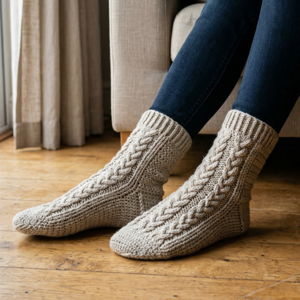 For socks, yarn choice is extremely important. You want something soft enough for comfort but structured enough to hold shape. Wool blends are ideal for warmth, while cotton blends work well for breathable indoor socks.