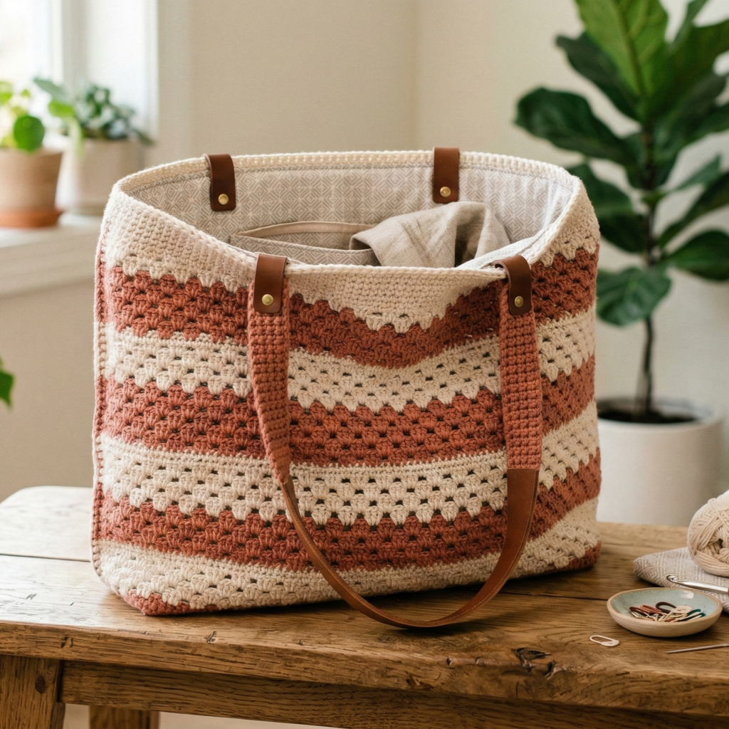 These five tote patterns — Granny Stripe, Gingham, Three Bears, Star, and Lacy Shell — cover a wide spectrum of styles: utilitarian and sturdy for shopping, playful and cute for gifts, and elegant and airy for summer days. Each pattern was written with practical construction steps (base → body → rim → straps → lining) and clear options for reinforcement and personalization so you can make a tote that’s both beautiful and built to last.