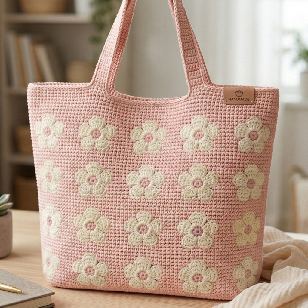 A floral printed tote bag brings softness and charm to a practical everyday accessory. This style is ideal if you love feminine details, botanical themes, or handmade bags with a gentle, decorative feel. Crochet floral print can be created with floral motifs, colorwork, or appliqué, depending on the look you want. It is a lovely way to add personality to a tote without making it feel too heavy or formal.