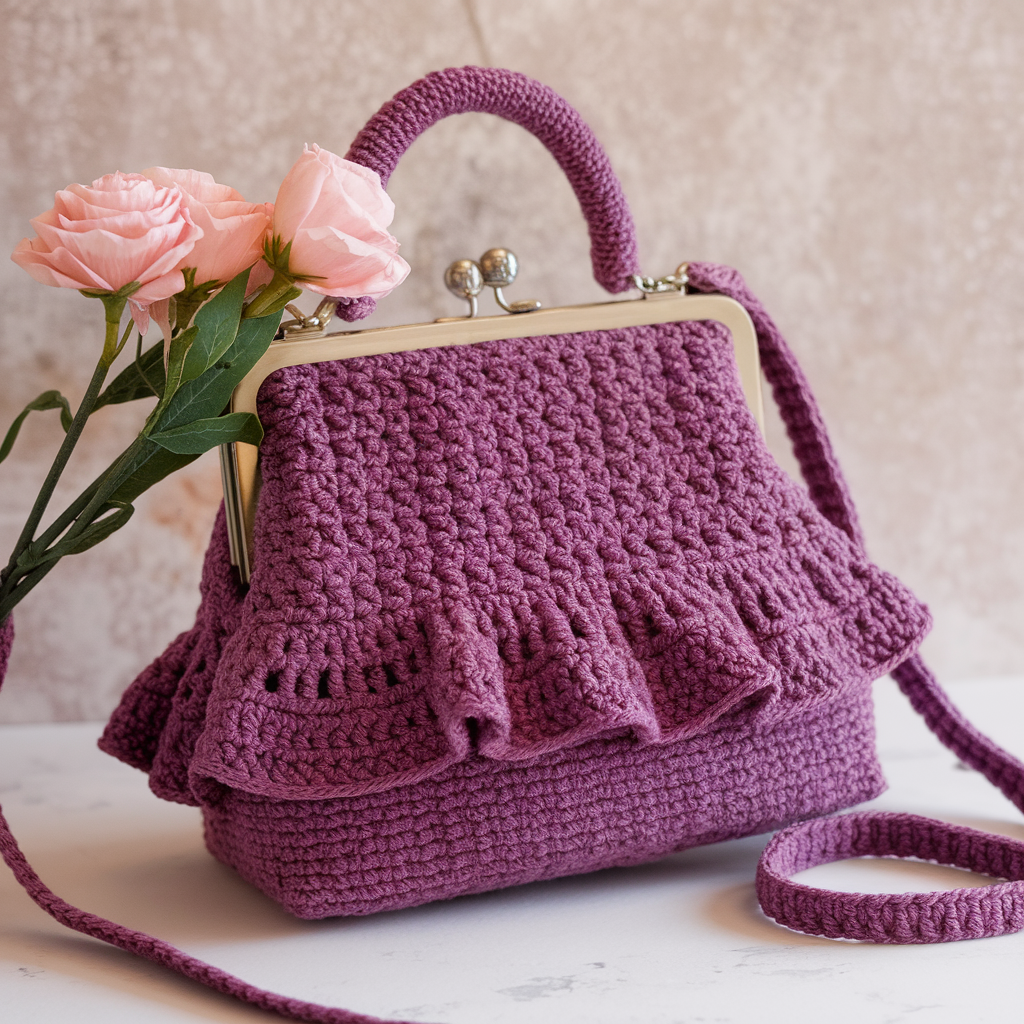 1. Crochet Purple Ruffles Shoulder Bag Pattern