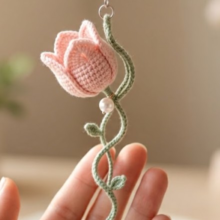 This charm looks especially lovely in soft pink with a white pearl and green stem. If you want a more luxurious look, use a faux pearl or tiny bead with a subtle shine. It is a beautiful accessory for spring styling or gift bundles.