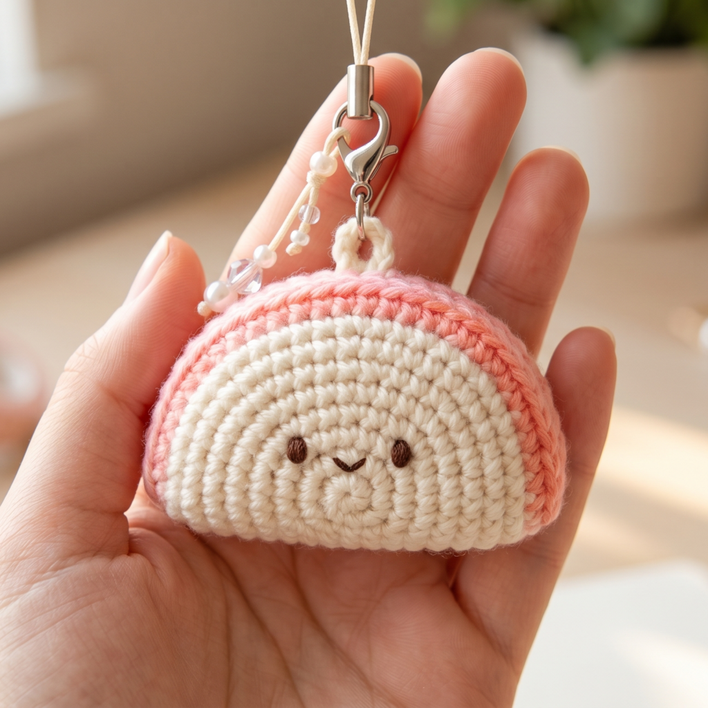 This charm looks especially nice in pastel pink and cream or soft coral and ivory. If you want it to feel more collectible, make several in different soft color combinations. The fish cake theme is unique and perfect for anyone who loves aesthetic handmade accessories.