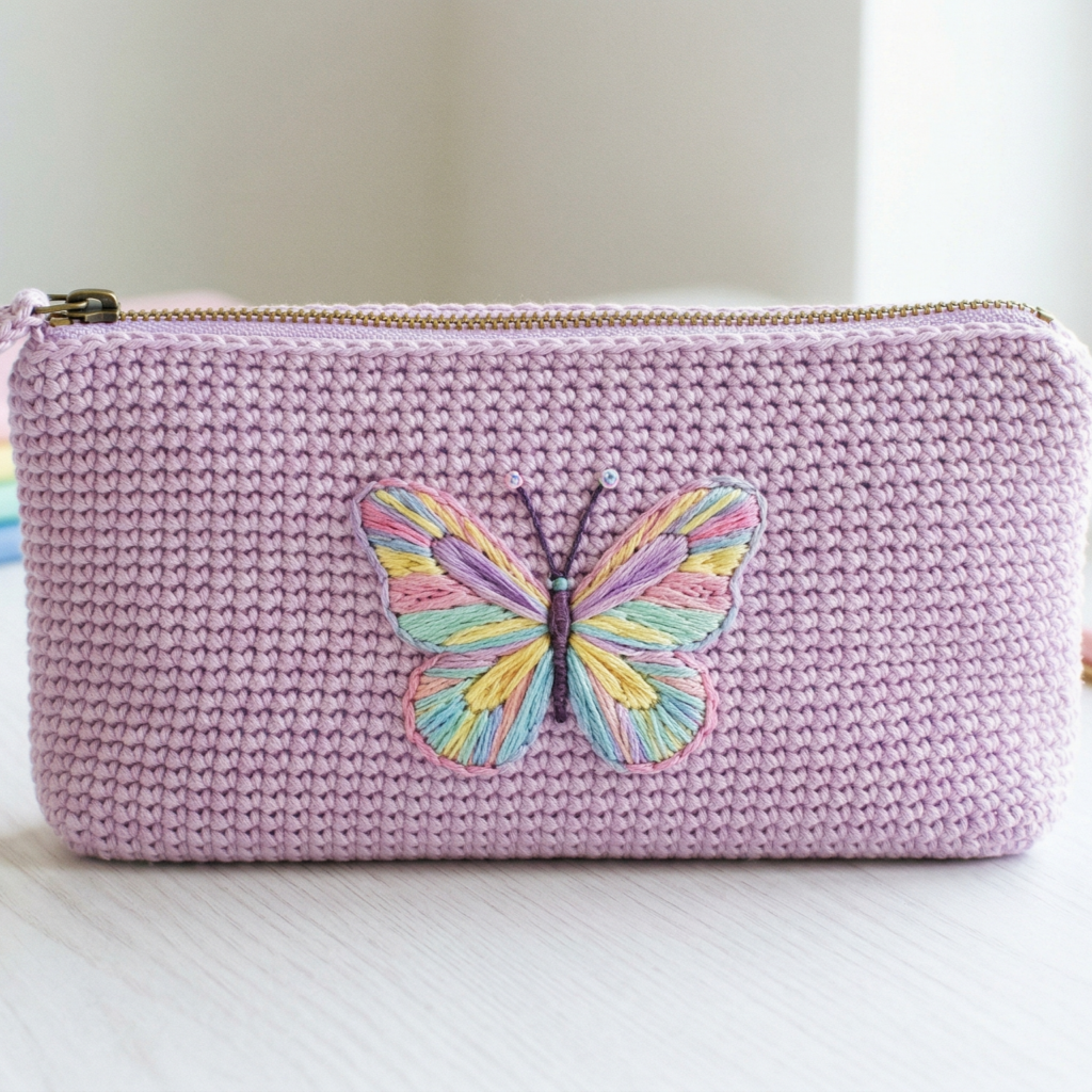 3. Crochet Butterfly Embroidered Pencil Case Pattern