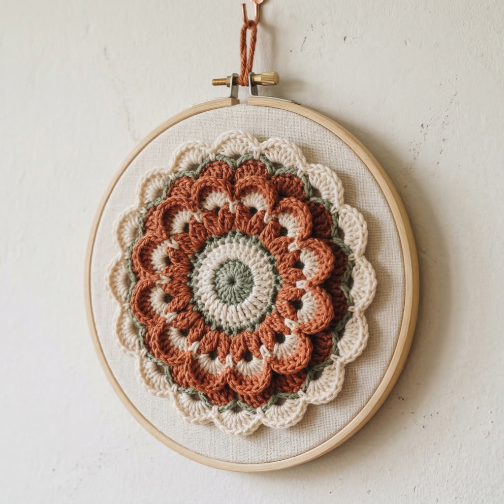 - Yarn: For small wall art I recommend cotton or cotton-blend (clear stitch definition, lightweight), sport/fingering or DK depending on texture. T-shirt yarn or bulky rope can be used for chunkier pieces — but these will make the piece larger. Use a hook 0.5–1 mm smaller than label if you want a firmer fabric.