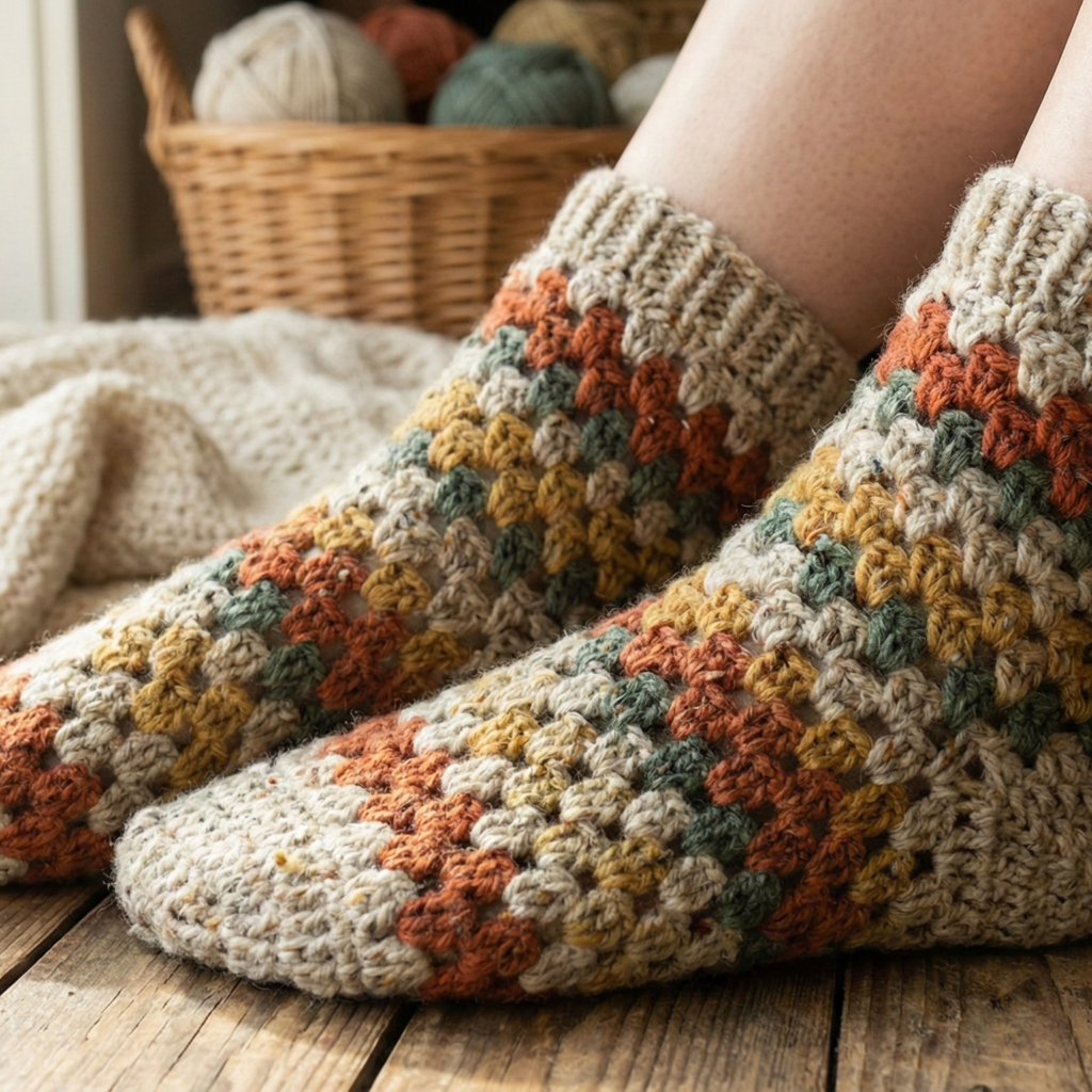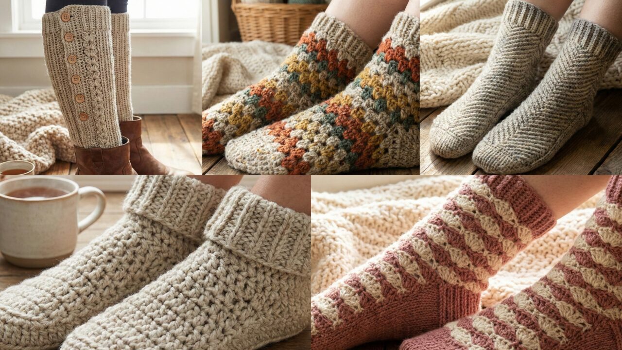 Cozy socks are the unsung heroes of winter — they keep toes toasty, make morning routines sweeter, and are one of the quickest handmade gifts that feel impossibly luxe. Below you’ll find five warm, wearable crochet sock patterns (Granny Stitch, Herringbone, Bernat Slipper, Vintage Waves, and Knee-High Buttoned) with clear, step-by-step instructions and plenty of tips for customizing fit and style. Each pattern is geared toward worsted/aran weight yarn (warm and durable), but I’ll also explain how to adapt yarn weight, hook size, and stitch counts so your socks fit perfectly.