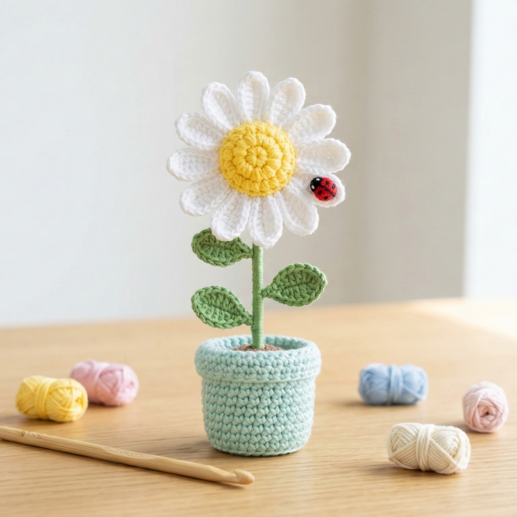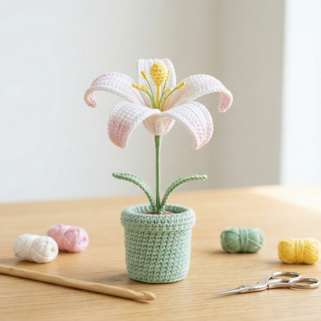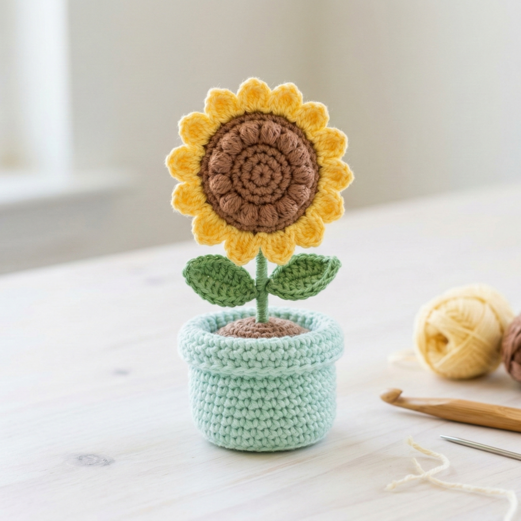 You now have six full, customizable amigurumi flower pot projects: sunflower, tulip, daisy, lily, rose, and lavender. Start with the simpler ones (daisy, tulip, sunflower) to build confidence, then try layered petals and textured centers for the lily and rose. Remember: yarn choice, hook size, and tight tension will change the look and size, so experiment and have fun. Each pot is a tiny, handmade piece of joy — perfect for gifting, selling, or brightening up your own room