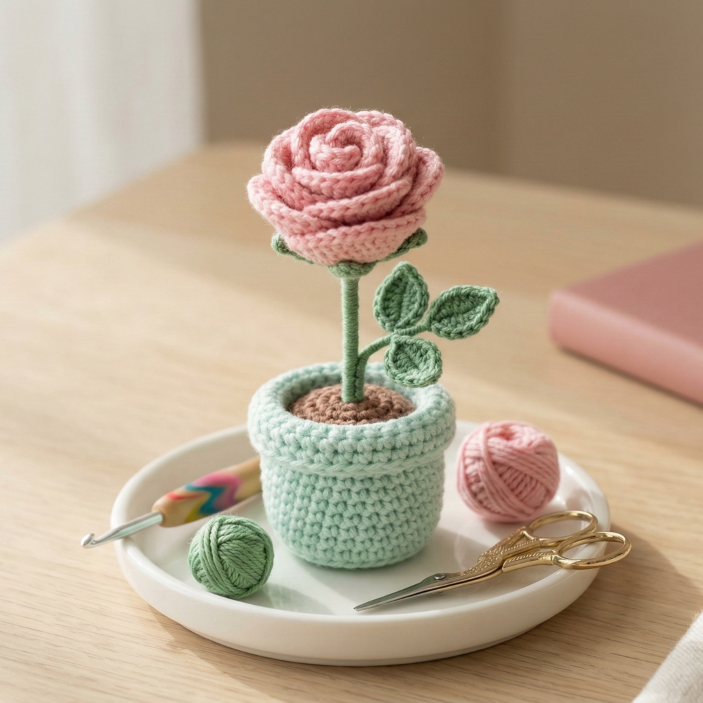 5. Crochet Amigurumi Rose Pot Pattern