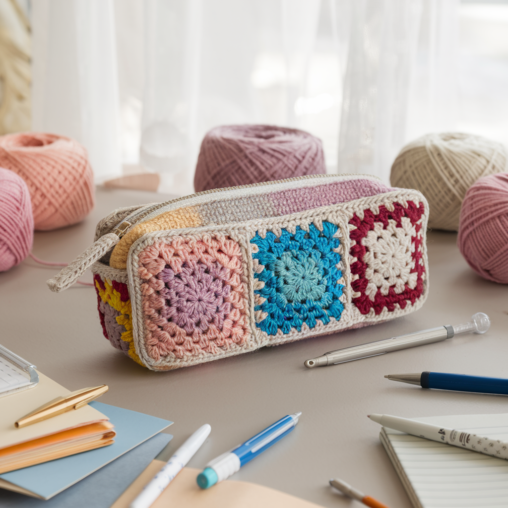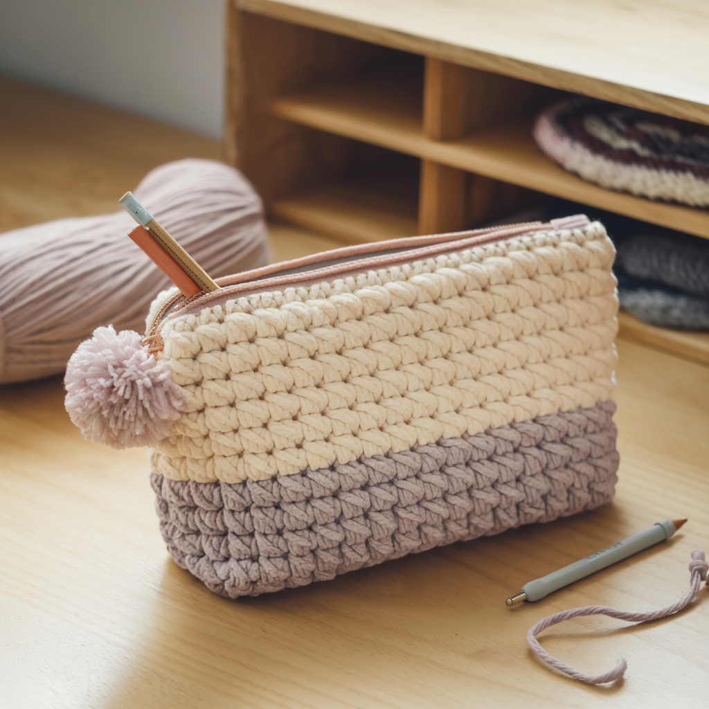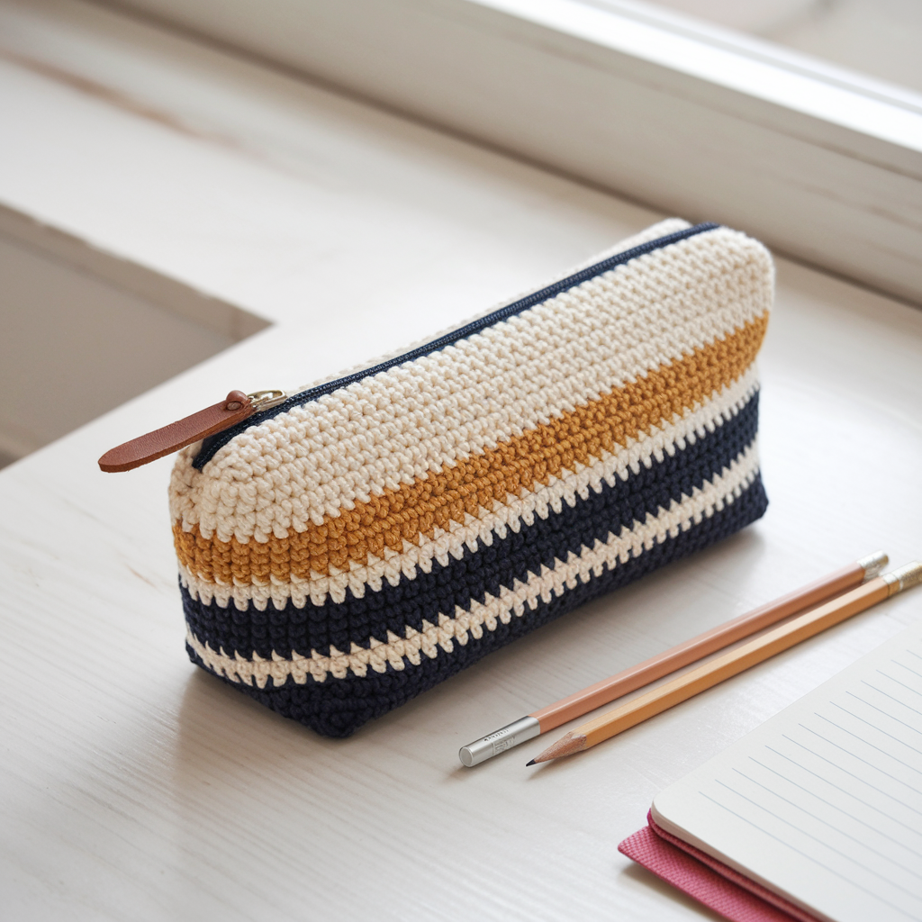 School supplies, art tools, makeup brushes, chargers — a nice pencil case keeps essentials tidy and looks good on a desk. These six crochet pencil case patterns are fast, usable, and cover a range of styles: faux-knit texture, cute cat motif, classic stripes, a chunky Bernat-style pouch, granny-square patchwork, and a romantic bobble-heart design. Each pattern below includes: materials, finished size, skill level, abbreviations, a clear step-by-step pattern, zipper/lining instructions, finishing tips, and variations so you can make one in an evening or batch a set over a weekend.