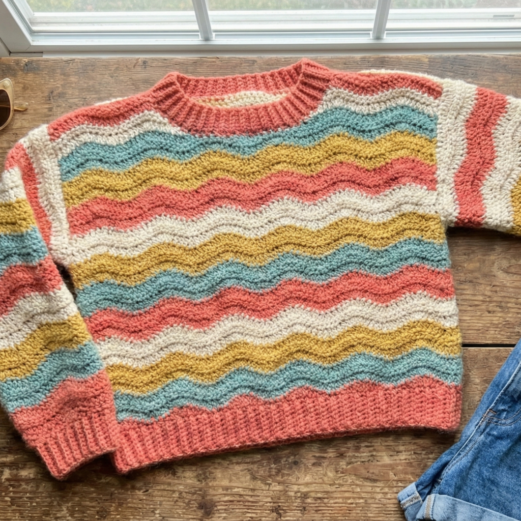 4. Crochet Retro Inspired Malibu Sweater Pattern