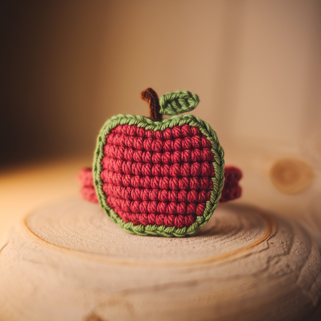- R5: sc around (one round) → 24. (This gives slightly flattened apple.)
