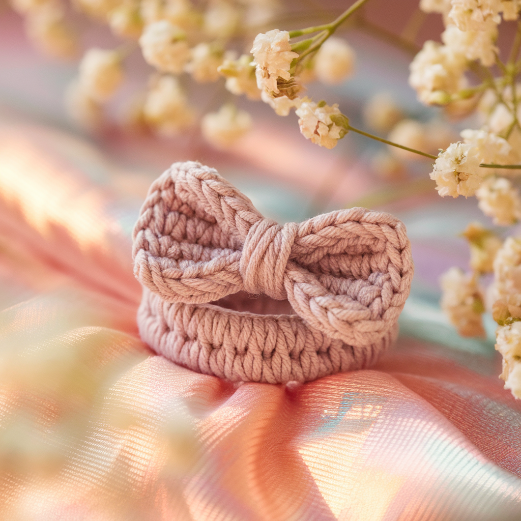 - Crochet thread size 8 or fine sport cotton (one color for band + small contrasting for bow center), 2.25–3.0 mm hook.