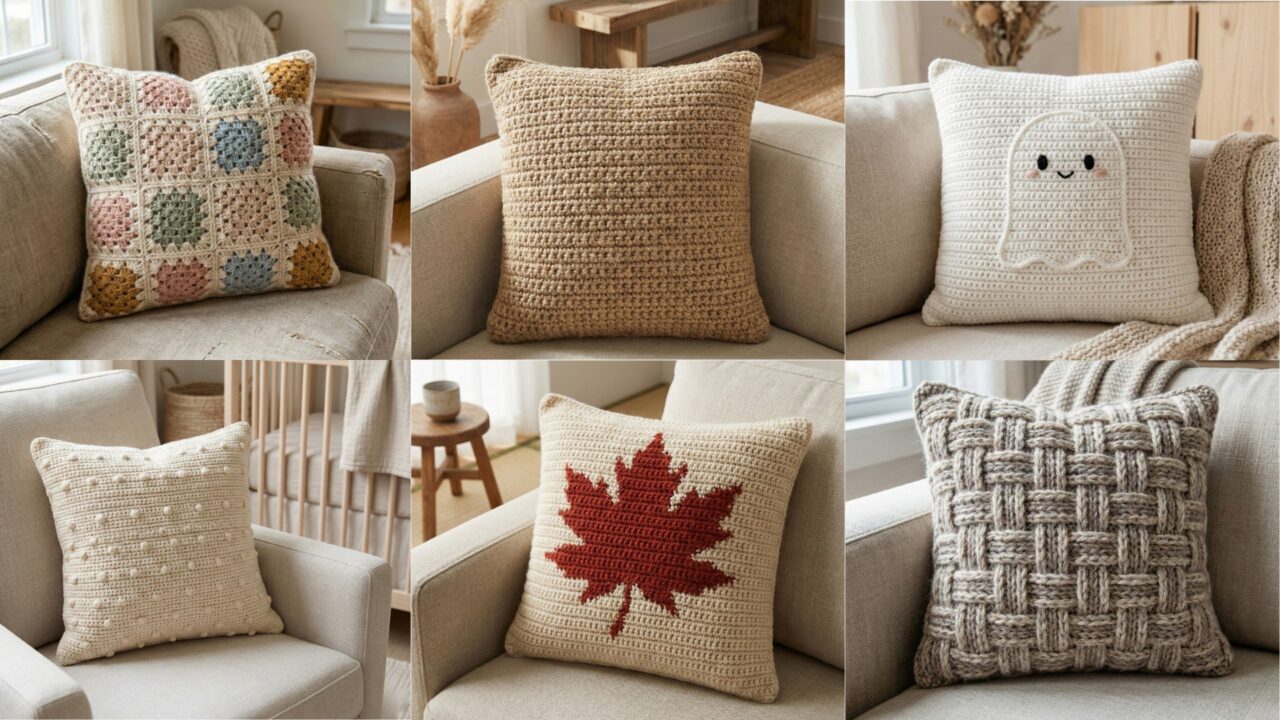 A textured crochet pillow is an instant way to lift a room — it’s tactile, decorative, and a satisfying project that shows off stitch skills. Below are six full pillow projects you can use as blog sections: Granny Throw Pillow, Basketweave Throw Pillow, Japanese Maple Pillow, Jute Pillow, Modern Neutral Nursery Pillow, and Cute Ghost Pillow. Each section includes: