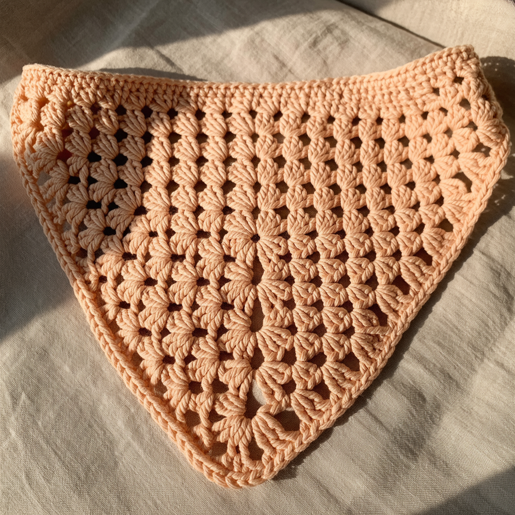 - Blocking: Lacy bandanas and granny-square assemblies benefit greatly from blocking — pin to shape while damp and let dry to open lace and square seams.