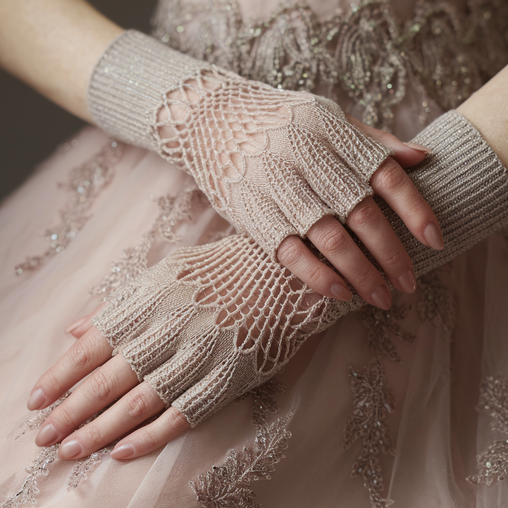1. Crochet Lurex Yarn Lace Fingerless Gloves Pattern