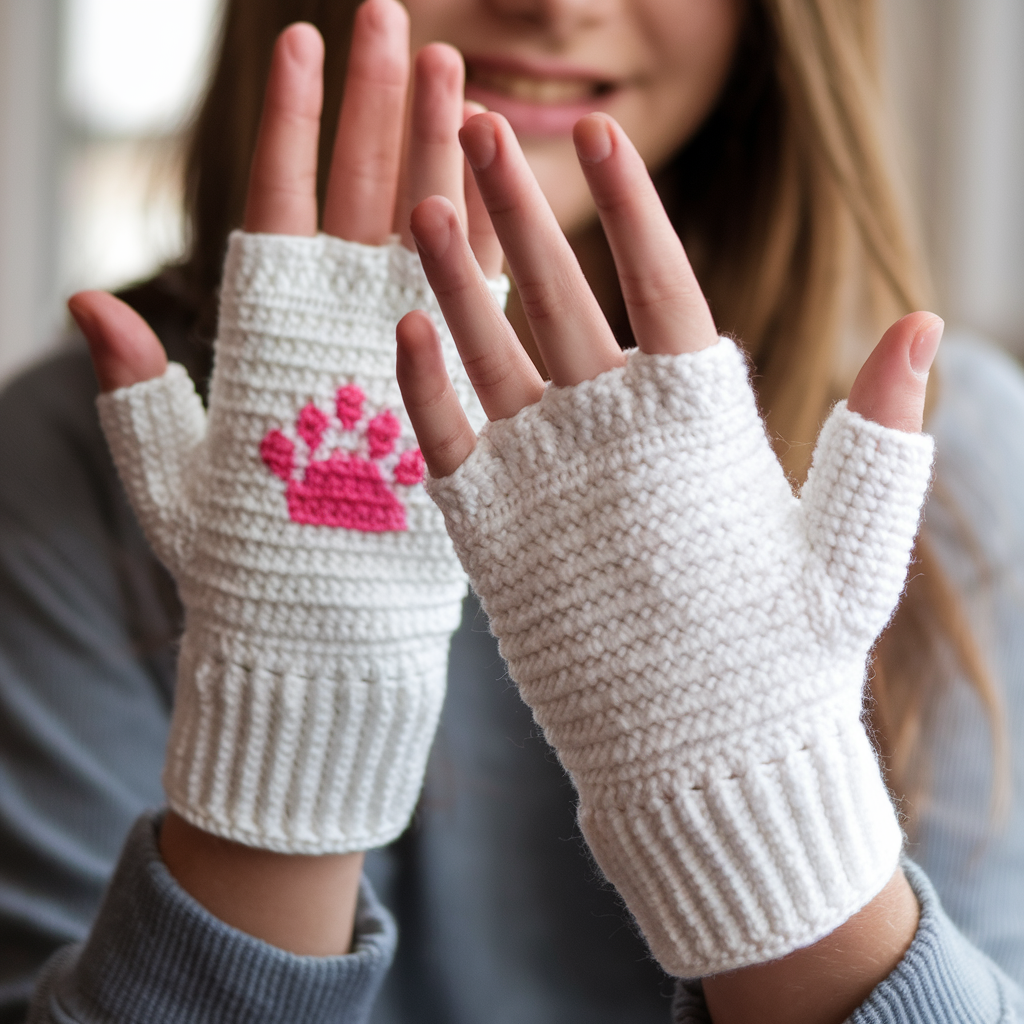 2. Crochet Kawaii Cat Paw Fingerless Gloves Pattern