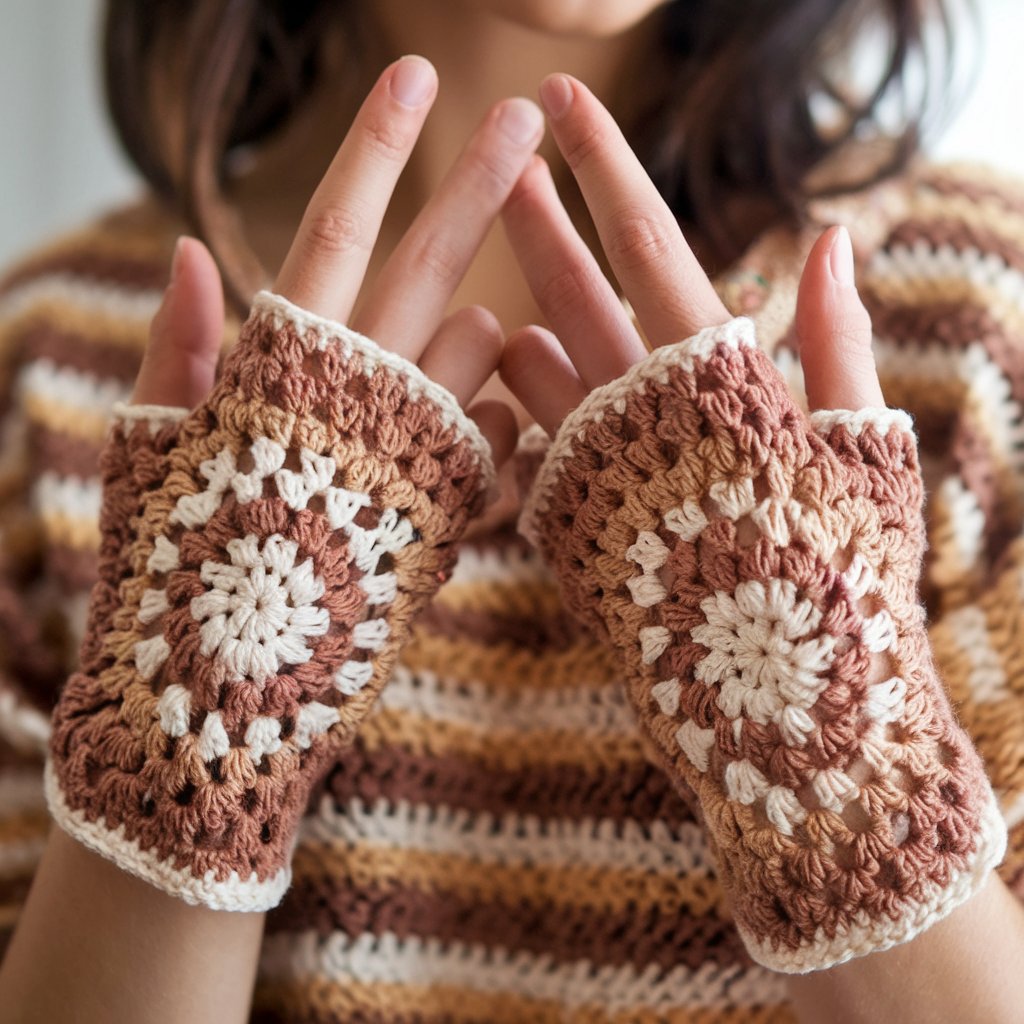 3. Crochet Granny Square Fingerless Gloves Pattern
