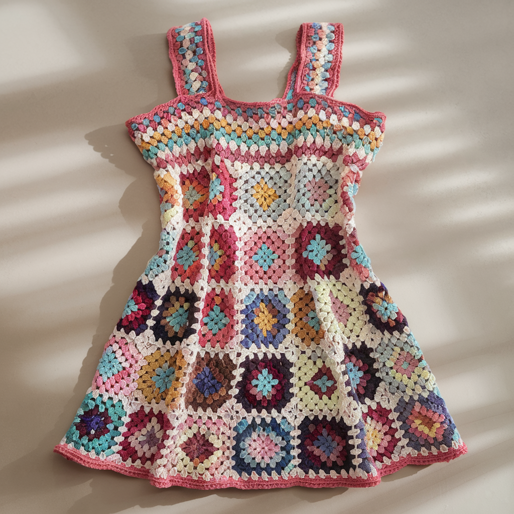 2. Crochet Granny Square Mini Dress Pattern
