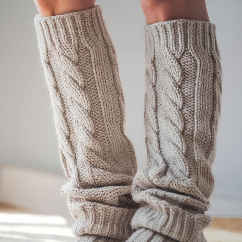- For leg warmers, use slightly negative ease at the top edge (so they stay up) OR add elastic/ drawcord if you want zero-mystery fit.