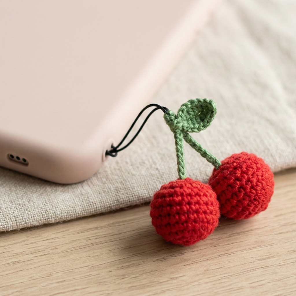5. Crochet Cherry Phone Charm Pattern