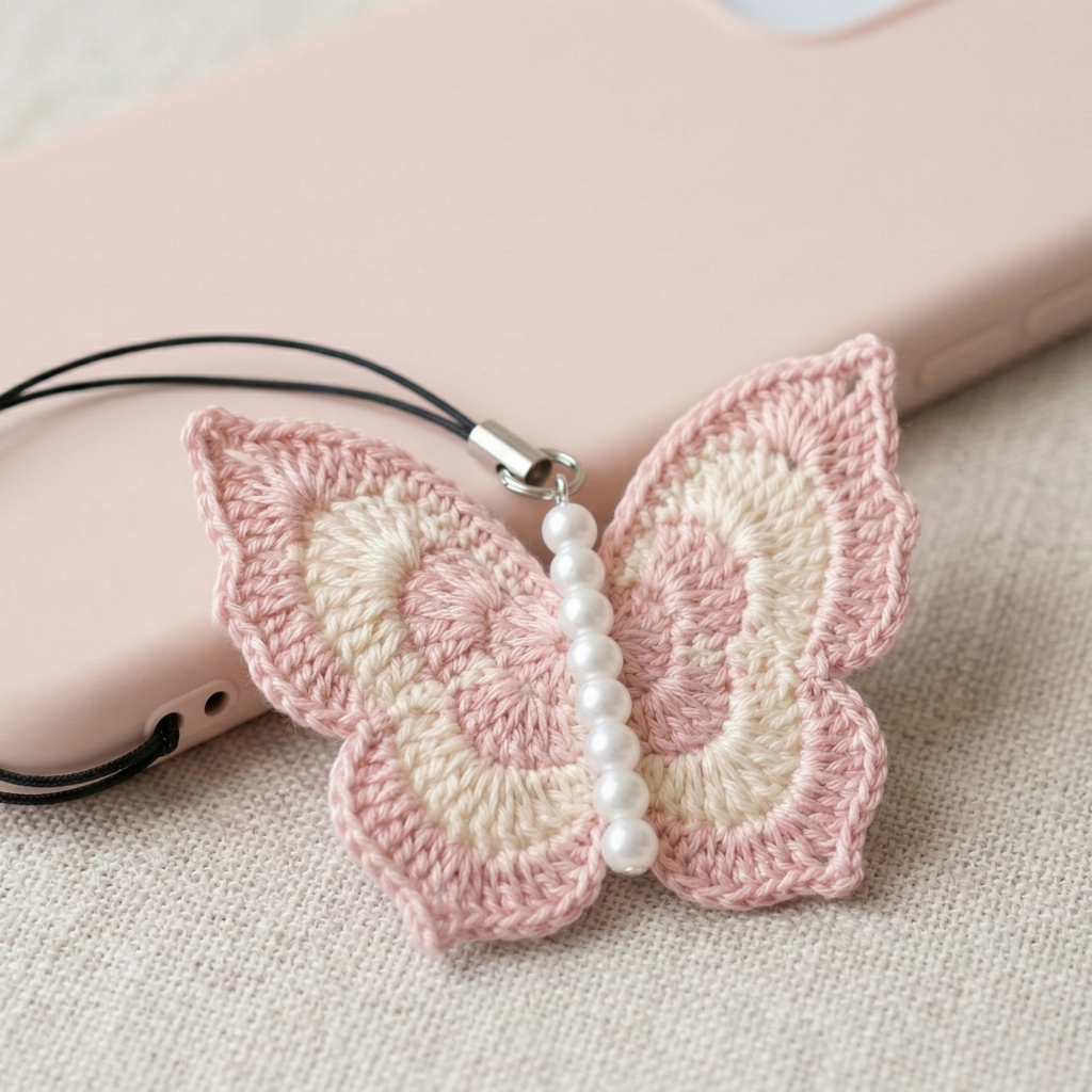 2. Crochet Butterfly Pearl Phone Charm Pattern
