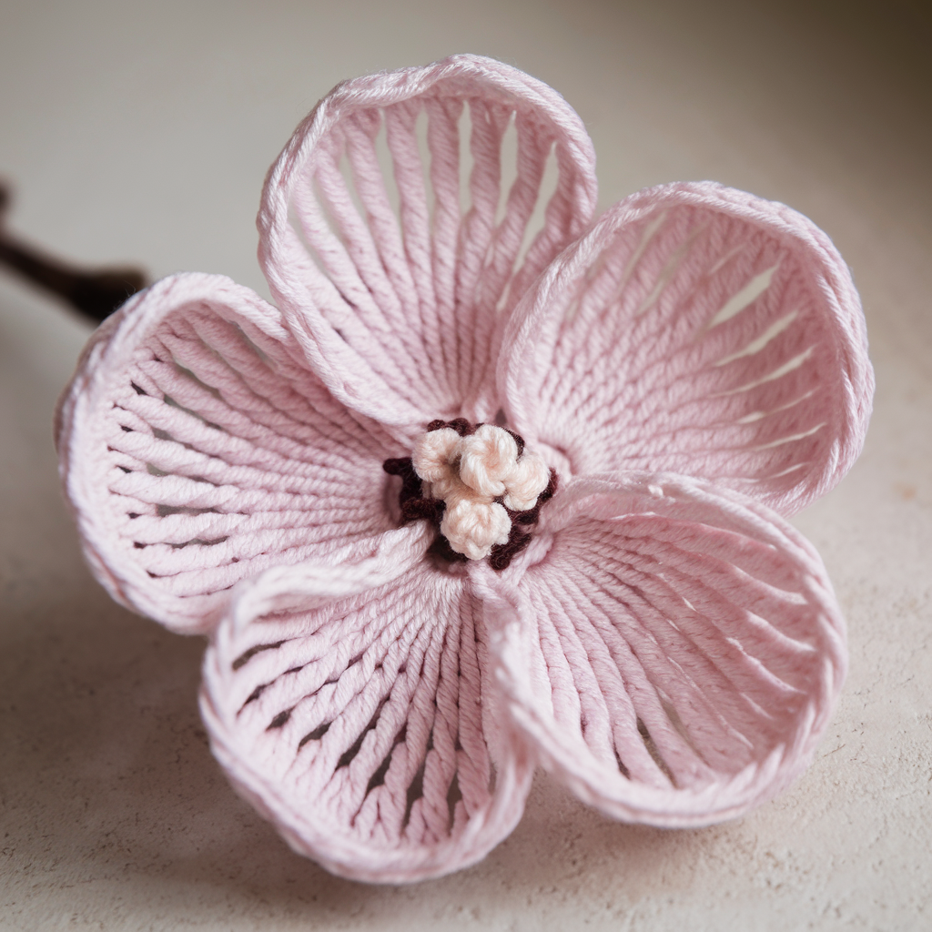 - Finishing: Fasten off and weave in ends. Pin petals slightly to create a natural sakura shape. Optional: add a tiny bead or French knot in the center for realism.