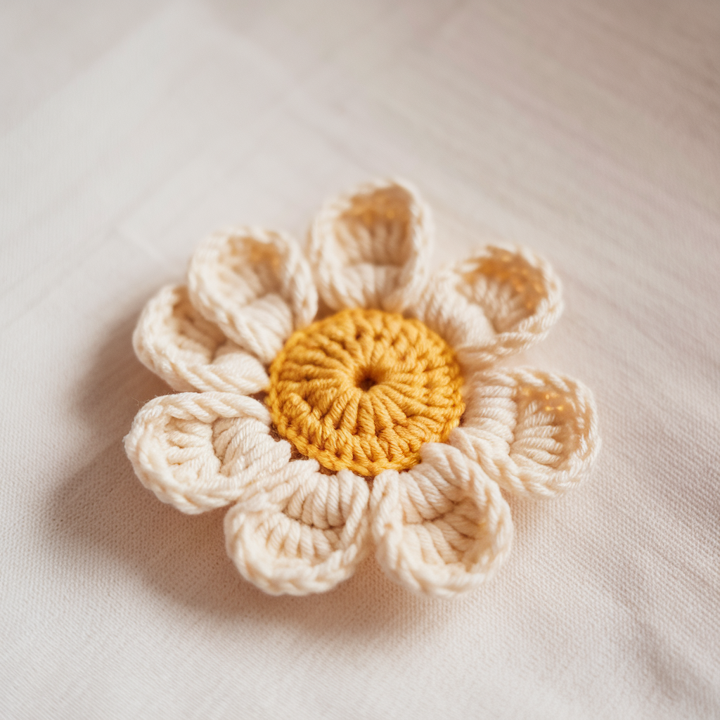 - Finishing: Fasten off and weave in ends. You can use bright colors to make a cheerful daisy.