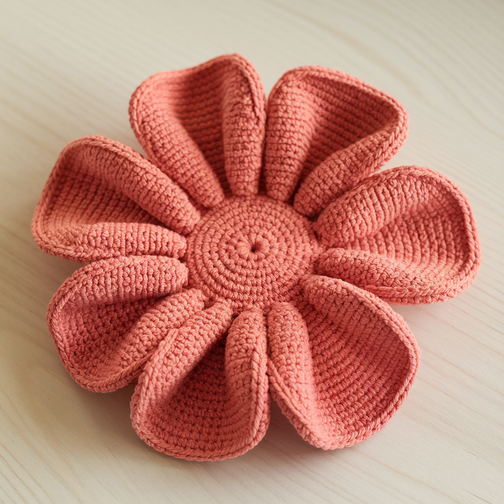 - Finishing: Fasten off, weave in ends. This flower has a modern wheel-like aesthetic perfect for bold projects.