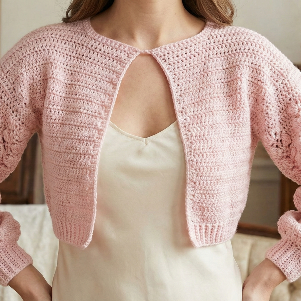 2. Crochet Gloved Puff Sleeves Shrug Pattern