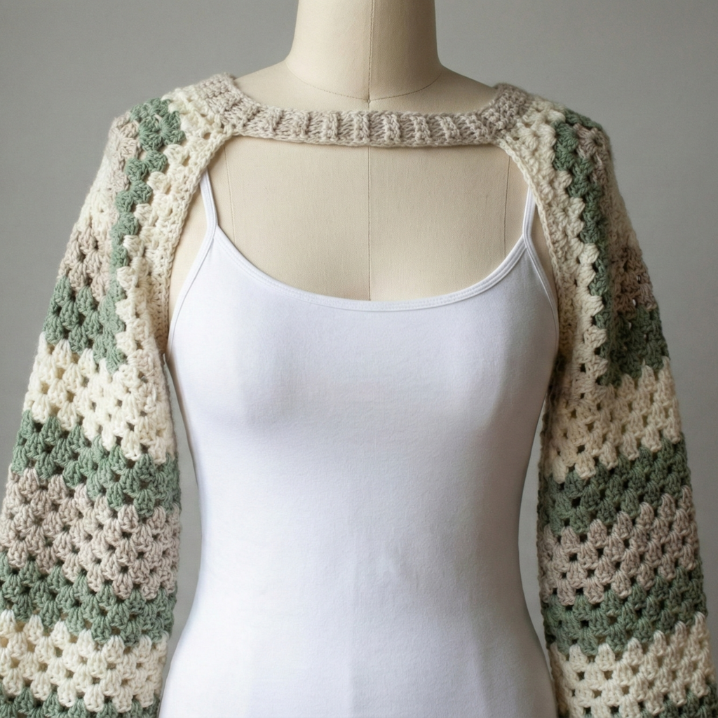 3. Crochet Granny Striped Shrug Sleeves Pattern