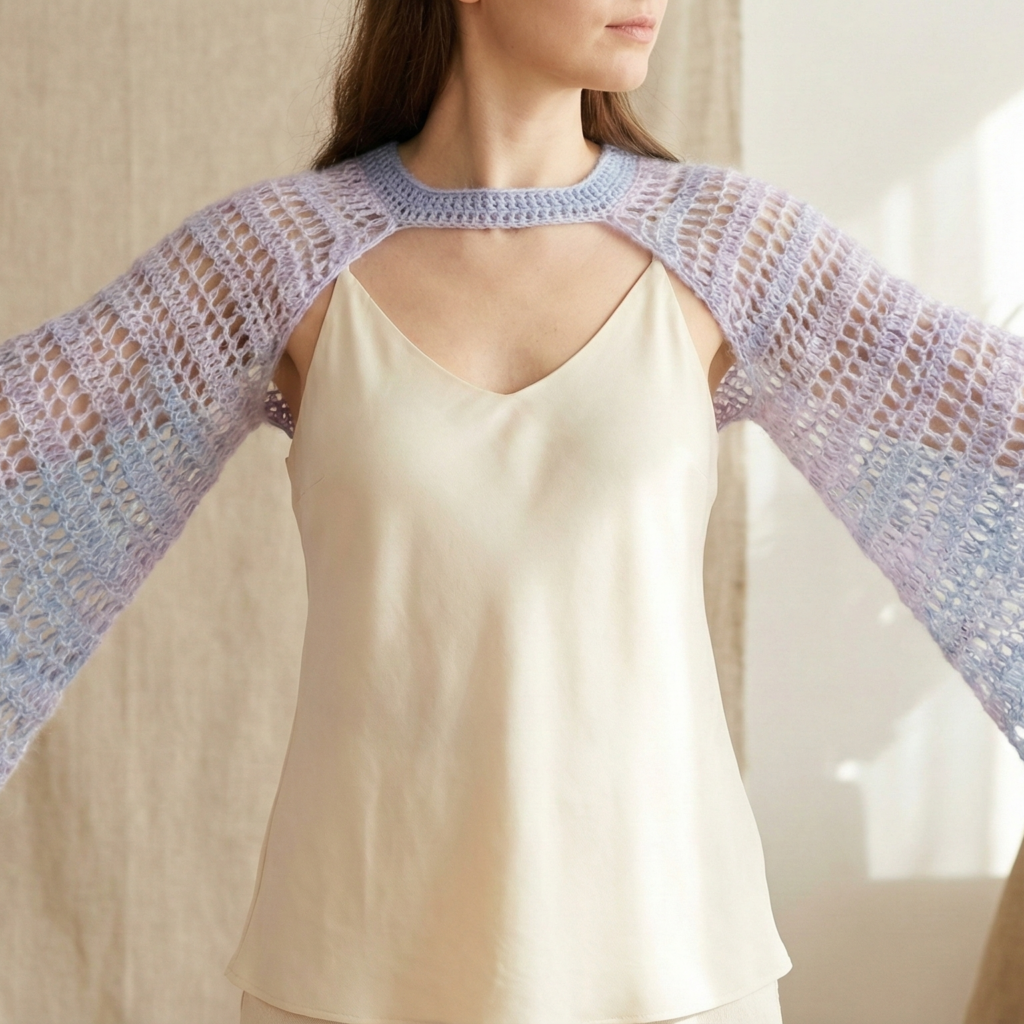 4. Crochet Long Fairy Shrug Flowing Sleeves Pattern