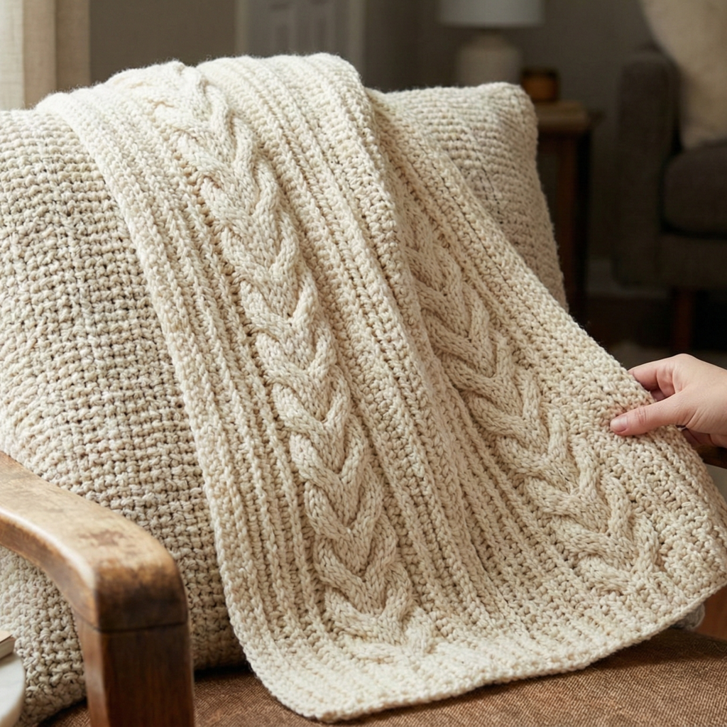 - Make a narrow Alpine scarf (two cable columns) or a wide blanket panel by repeating the pattern across width.