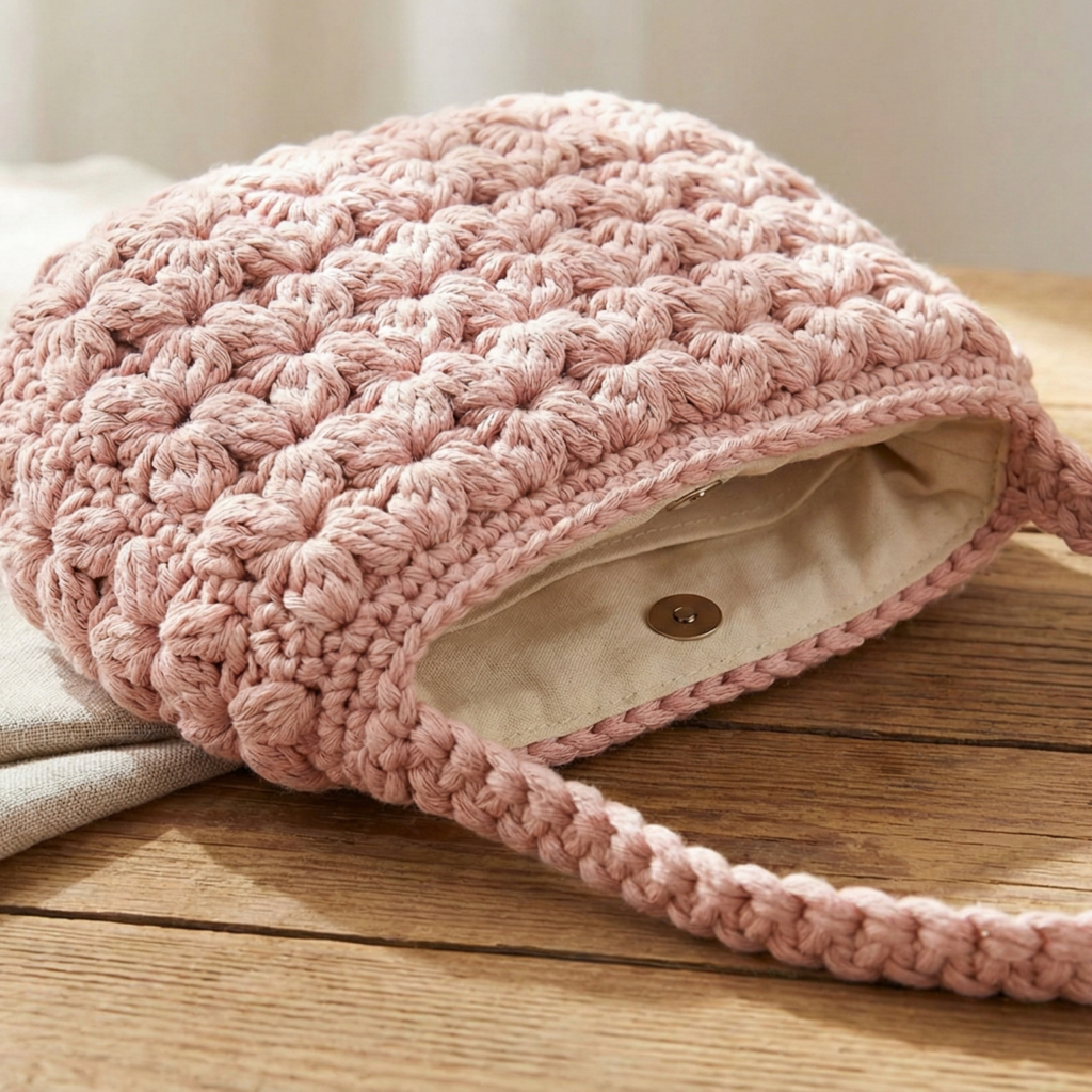 - Yarn: for shoulder bags choose sturdy yarns — cotton, cotton blends, tapestry/mercerized cotton, T-shirt yarn, or worsted acrylic for structured bags. For soft, drapey bags use DK or held-double DK.