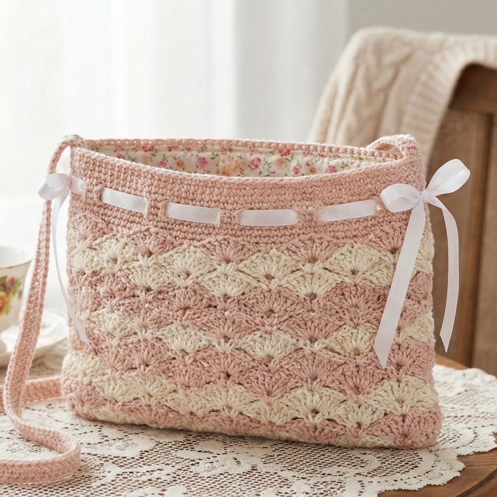 3. Crochet Coquette Cute Ribbon Shoulder Bag Pattern