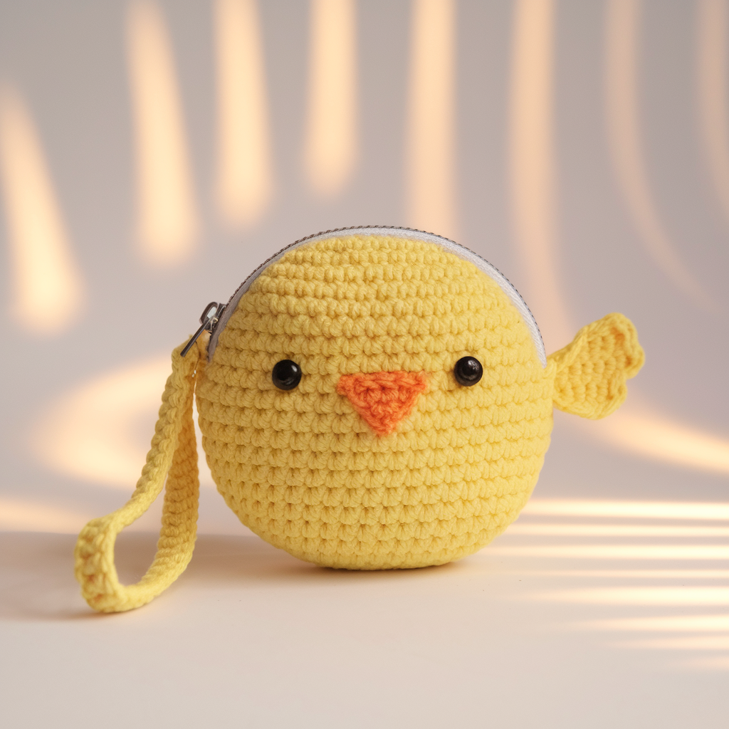 Tiny round purse with a cheerful chick face — perfect for kids or tiny-key projects.