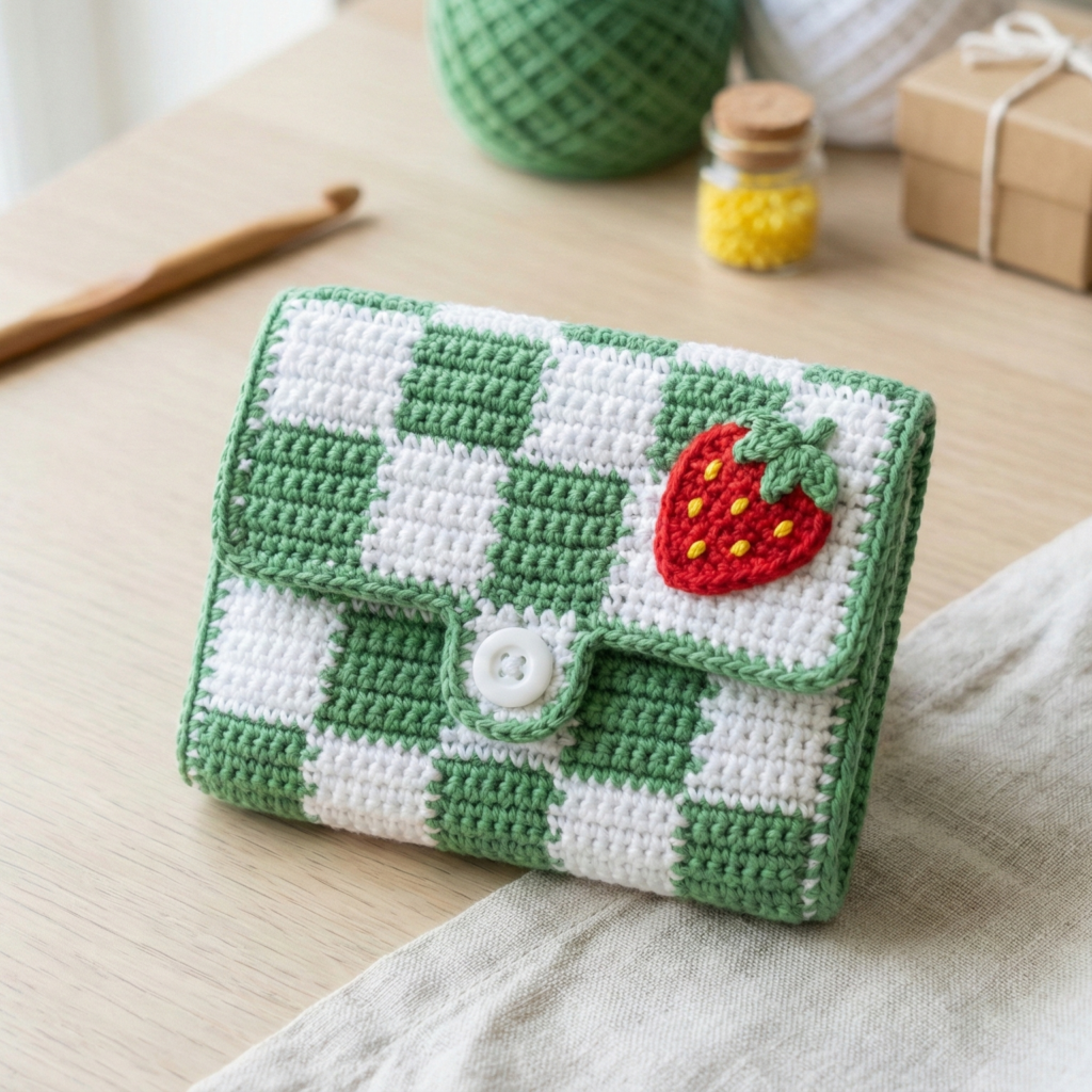 5. Crochet Checkered Strawberry Wallet Pattern