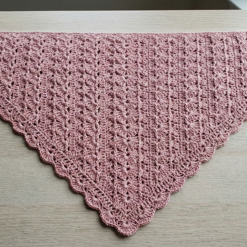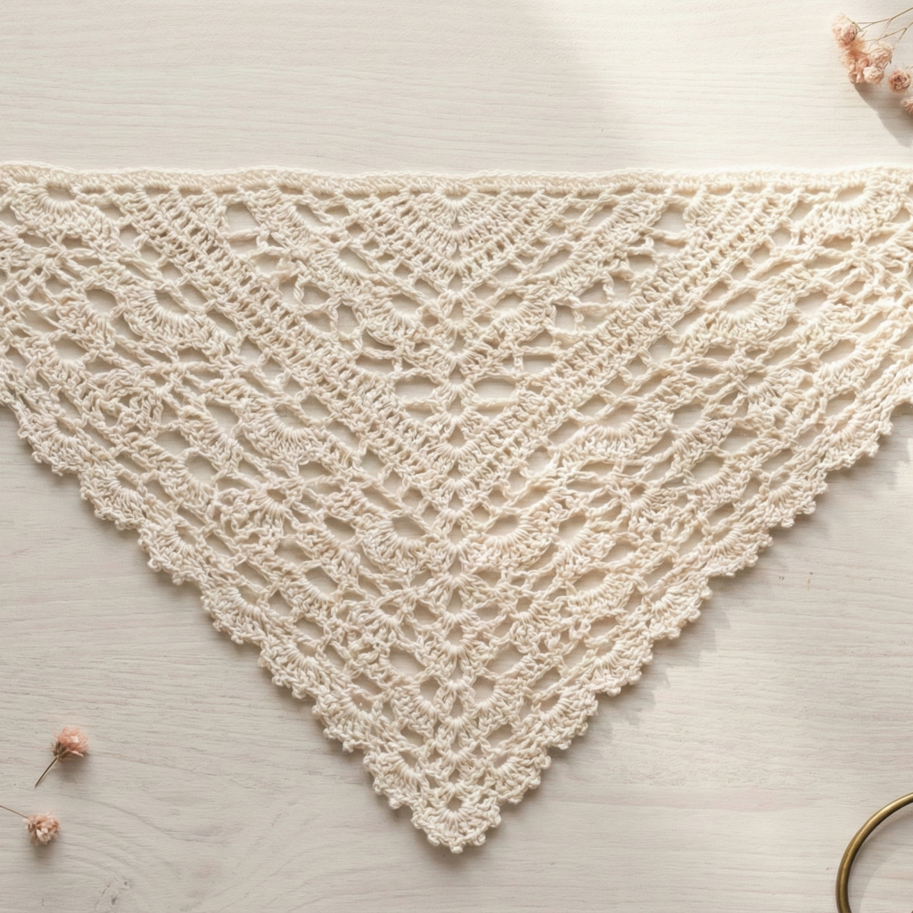 - Triangle worked flat from point to base (increase every row) — typical for shell and lace bandanas.