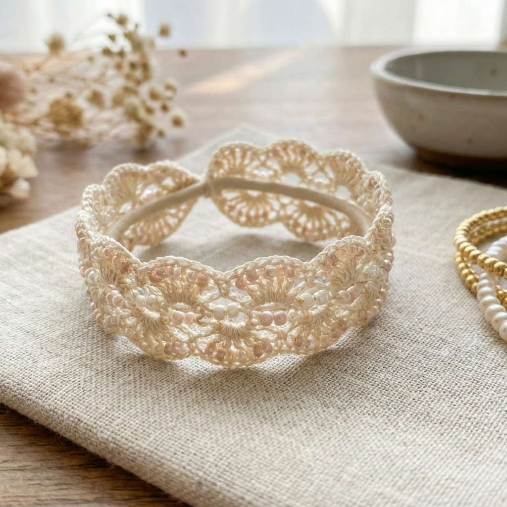 A comfy, no-clasp stretch bracelet in lacy crochet — perfect for teens and gifts you can slip on instantly.