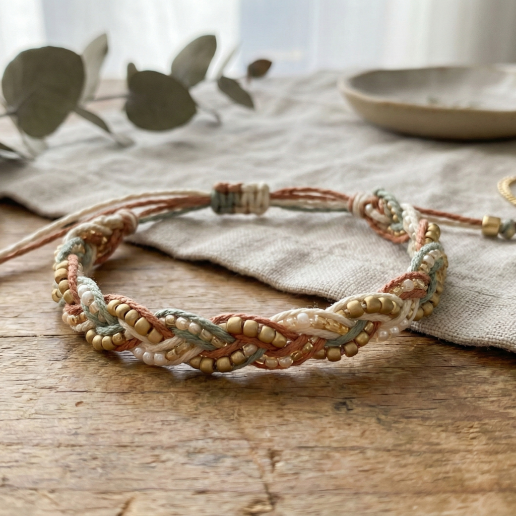- Macramé cord or waxed cotton cord — great for braided/cord-style bracelets and for threading beads easily.