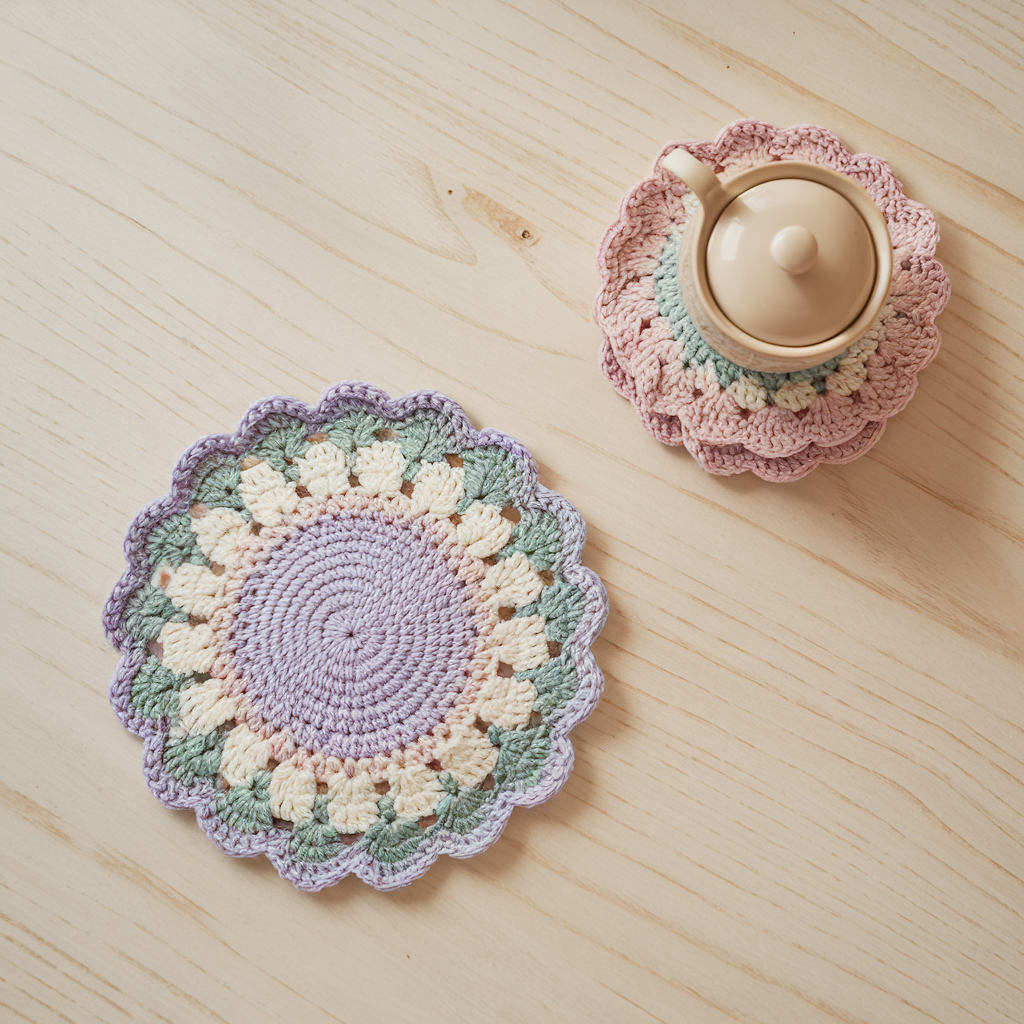 - Blocking: block coasters lightly after finishing to flatten and set shape.