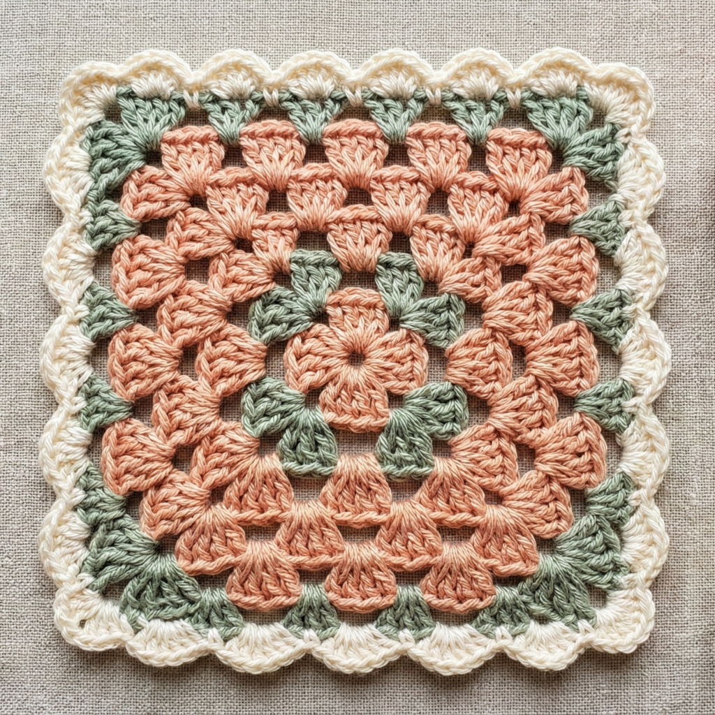- Scalloped or picot edge: adds a feminine finish to shell/granny-style squares.