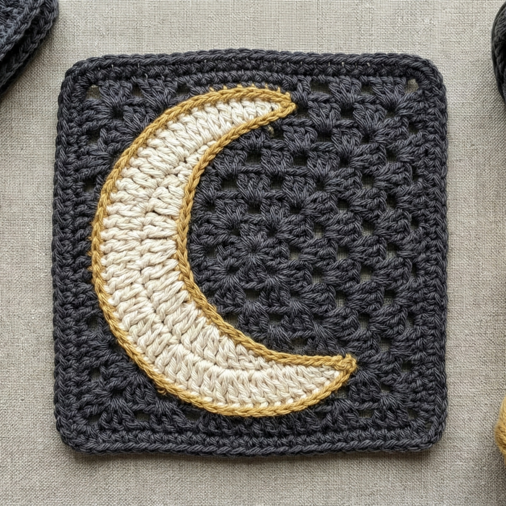 - The Moon Granny uses placed increases and strategic color blocks to form a crescent within the square. You’ll work standard granny clusters but change colors on sides to shape the moon.