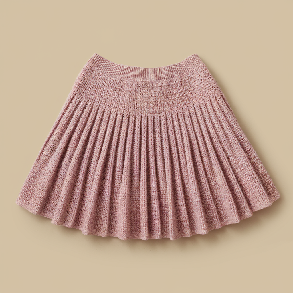 A structured, preppy mini with crisp pleats — great with sweaters, boots, or a tee. Construction: worked as a single rectangular tube with pleat shaping and elasticated waist for secure fit.
