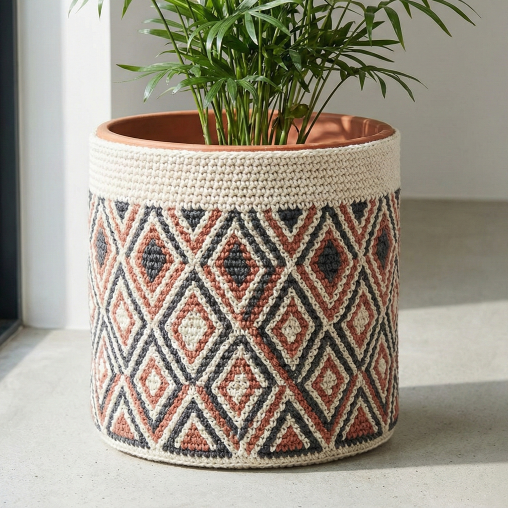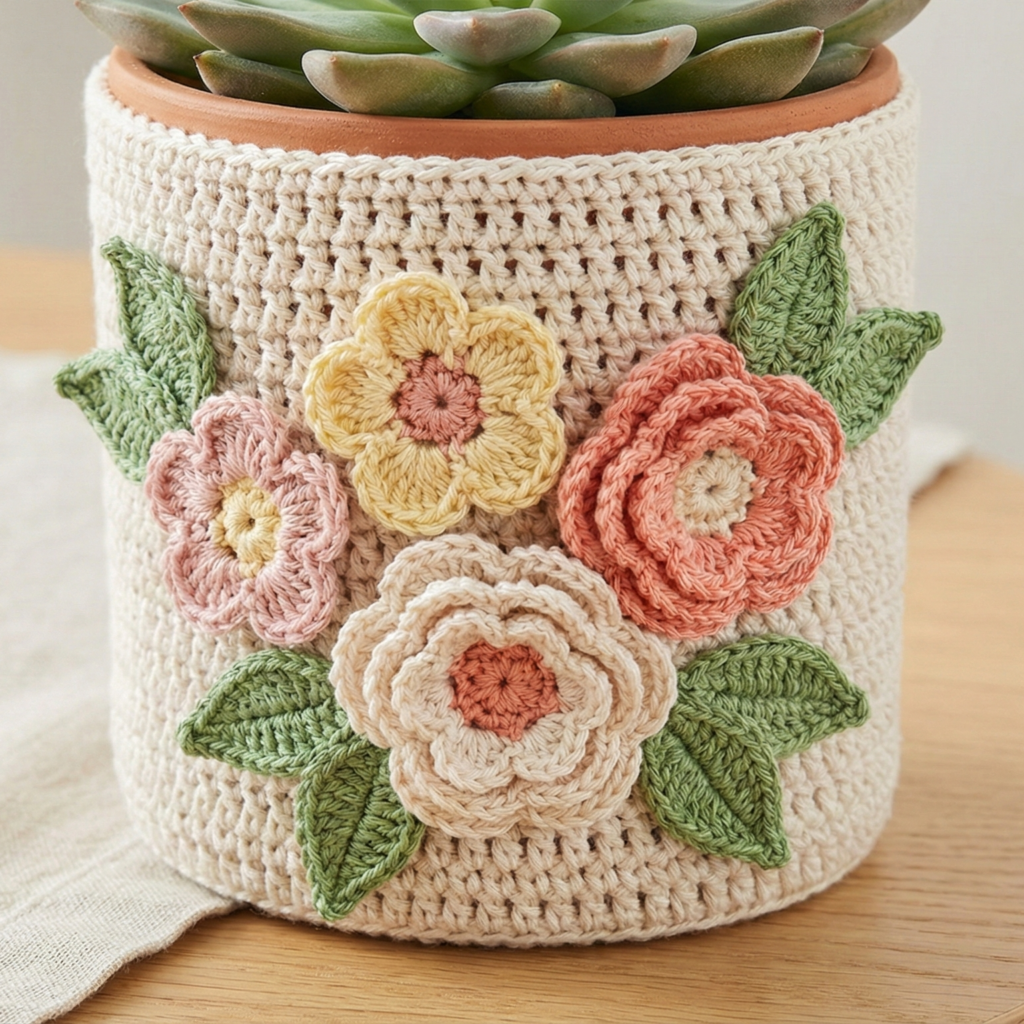 They’re decorative, removable, washable (if made from cotton), and let you mix seasonal colors, patterns, and textures without replanting. Covers are best for decor only — if your plant needs watering into the pot, remove the cover first or add a plastic liner so the crochet doesn’t stay constantly wet.