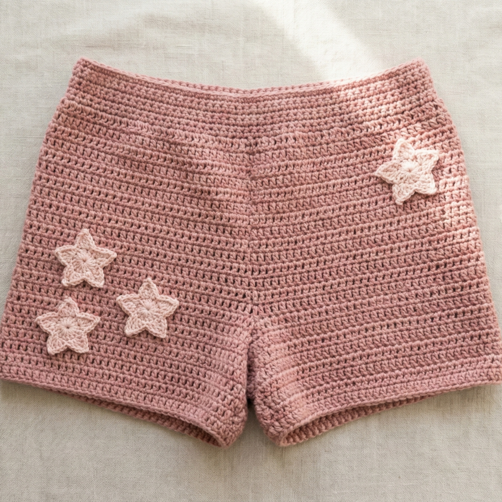 Handmade crochet shorts let you combine style and practicality — from sporty stripes and slimming ribs, to feminine shells, breezy beach covers, retro granny-square patchwork, and playful star motifs. Pick the pattern that suits your yarn stash, season and modesty needs: