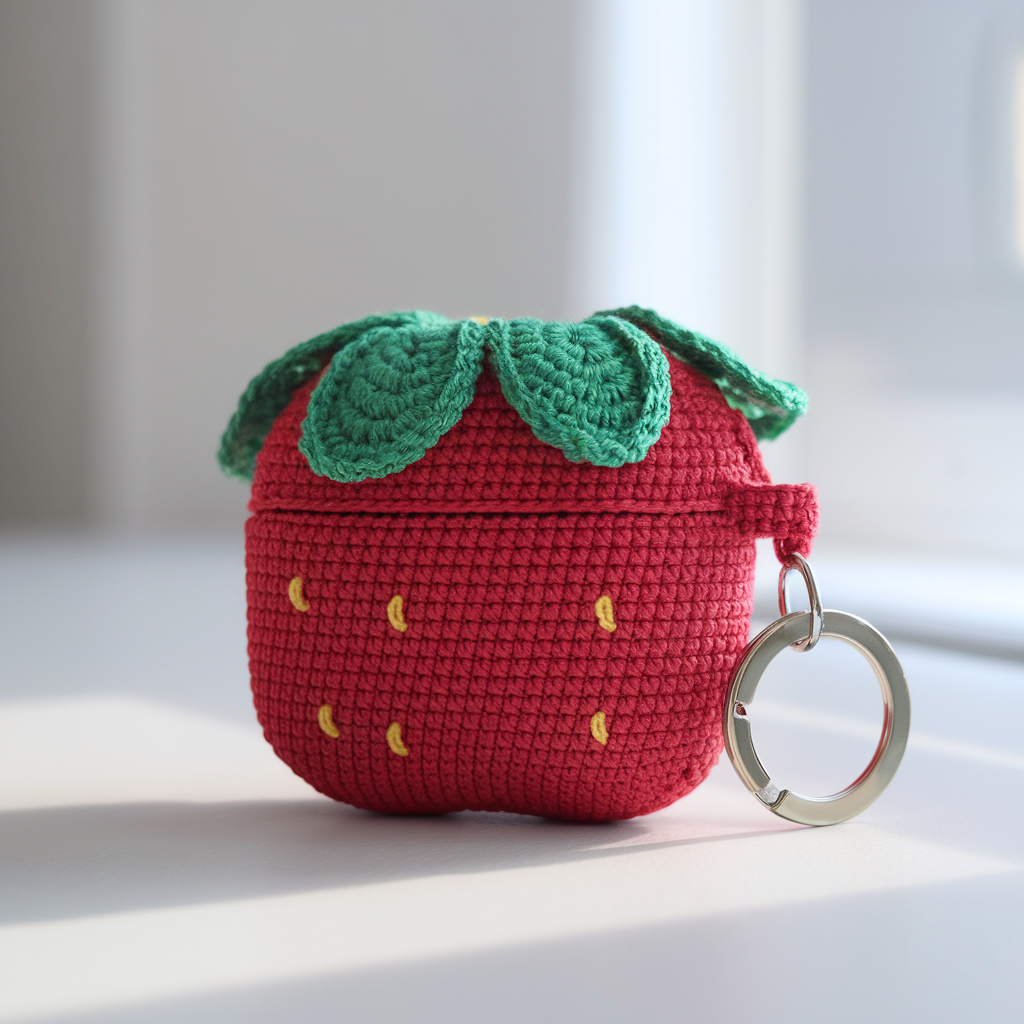 - Make strawberry keychains by leaving out the AirPod interior and adding a small zipperable pouch element.